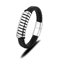 Персонализированные Выгравированные имена человек ювелирные изделия на заказ черный плетеный браслет из натуральной кожи из нержавеющей стали ювелирные изделия для мужчин